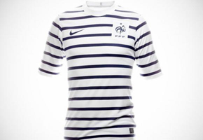 Dans un but purement marketing, l’équipe de France de football change régulièrement de garde robe. Comme ce fut le cas pour le maillot domicile arboré face au Brésil, il aura fait sensation auprès des amateurs de ballon rond. Et pour cause, il rompt avec les derniers maillots dits « extérieurs », à large dominante blanche. Nike a audacieusement lancé un maillot « marinière », blanc à bandes horizontales bleues, reprenant le style du célèbre vêtement, très apprécié des femmes et revenu à la mode en 2010.