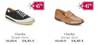 Pour les amateurs de chaussures de ville, la marque Clarks est le meilleur choix en matière de chaussures pour homme. Pendant ces soldes Spartoo, on vous a choisi 2 modèles : le street Party à -45 %, qui est un modèle des modèles les plus casual chez Clarks et le modèle Raven Soul qui est une chaussure de ville classique de chez Clarks. Vous trouverez ces modèles Sur Spartoo.fr/clarksPour continuer de profiter des soldes chaussures 2011, vous pouvez visiter notre page soldes chaussures homme qui vous permettra de profiter des dernières actualités du shopping chaussures.