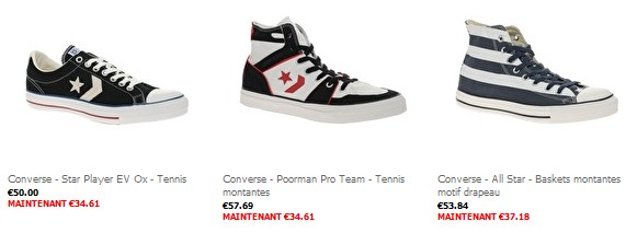 Pour les amateurs des chaussures converse, Asos.fr vous propose des modèles à moins de 35euros, vous y trouverez les modèles célèbres de la marque tels que All Star, Star Player… Sur Asos.Fr